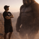 “Ultra-realistic cinematic street portrait of a young man leaning casually against a tall orange pillar, one leg bent and crossed over the other, left hand in pocket, right hand touching his sunglasses. Wearing a beige oversized t-shirt, black cargo pants, and black-white sneakers. Stylish haircut, trimmed beard, confident calm expression. Outdoor architectural background with repeating orange pillars, soft natural daylight, shallow depth of field, professional DSLR photography, vertical 4:5. Image generate