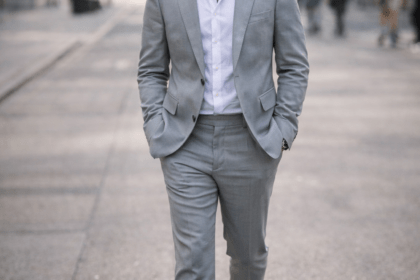 Google Gemini / Meta AI / ChatGPT Promte A 17-year-old young man, mirroring the exact pose from the reference image, stands leaning against a concrete planter wall on a city street. He wears a grey ri...