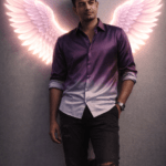 Use my face from attached photo,Subject & Pose: A handsome man in his 30s walking confidently toward the camera, one hand in pocket, other hand pulling a luxury monogrammed leather rolling suitcase. Full-body shot, centered composition.