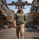 A ma. seated in the driver’s seat of a convertible, captured in a “glance back” or “over-the-shoulder” pose. His left hand rests casually on the steering wheel while he turns his head toward the camera. His expression is cool, confident, and slightly mysterious. The slight parting of the lips and the shielded eyes create an aura of effortless “cool.” He is wearing a crisp white button-down shirt with the collar slightly open. He is accessorized with translucent-framed sunglasses with dark lenses and several minimalist metallic bracelets on his left wrist. The setting is an outdoor, sun-drenched coastal area. The primary prop is a Mini Cooper Convertible. This is identifiable by the iconic round steering wheel hub featuring the Mini logo and the Union Jack stitching on the headrest of the leather seats. The dark leather interior provides a stark contrast to the subject’s white shirt. The photography relies heavily on “bokeh” (background blur) and specific framing to create a cinematic feel. The photo uses a close-up, medium shot with a shallow depth of field. The camera is positioned behind the passenger seat, using the car’s interior as a frame-within-a-frame. The lighting is natural sunlight, likely during the “golden hour”. It creates soft highlights on his hair and the contours of his face, while the car’s interior remains in deep, moody shadow. The background consists of out-of-focus trees and foliage. The focus is tack-sharp on the subject’s face and sunglasses. Negative Prompt: No oil painting. No drawings. No fantasy. No anime. No cartoon. No 3D render. No soft diffused illuminating skin tone.