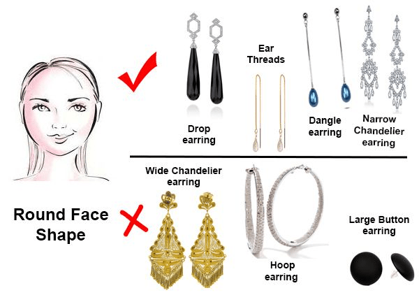 Long drop earrings and angular designs help elongate a round face.