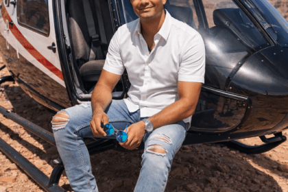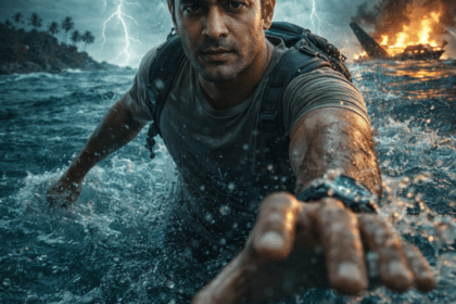 ChatGPT / Google Gemini / AI at Meta Promte . “A hyper-realistic cinematic scene shows a man floating mid-air in slow motion during twilight, surrounded by drifting particles and soft ambient fog. He has black tousled styled hair, slightly lift...