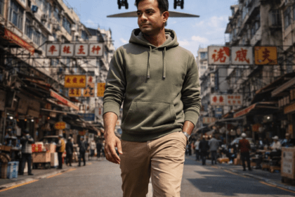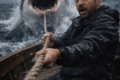 ChatGPT / Google Gemini / AI at Meta Promte . “A hyper-realistic cinematic scene shows a man floating mid-air in slow motion during twilight, surrounded by drifting particles and soft ambient fog. He has black tousled styled hair, slightly lift...