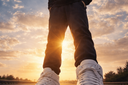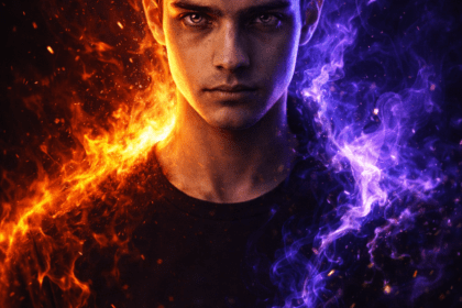 ChatGPT / Google Gemini / AI at Meta Promte . “A hyper-realistic cinematic scene shows a man floating mid-air in slow motion during twilight, surrounded by drifting particles and soft ambient fog. He has black tousled styled hair, slightly lift...