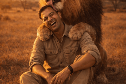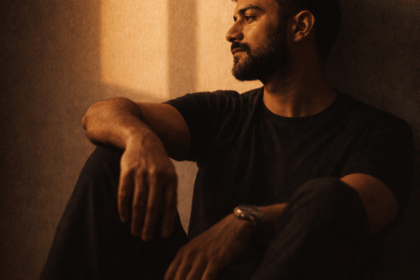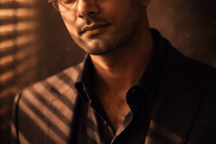 ChatGPT / Google Gemini / AI at Meta Promte . “A hyper-realistic cinematic scene shows a man floating mid-air in slow motion during twilight, surrounded by drifting particles and soft ambient fog. He has black tousled styled hair, slightly lift...