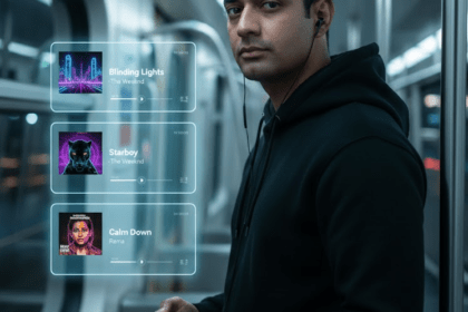 ChatGPT / Google Gemini / AI at Meta Promte . “A hyper-realistic cinematic scene shows a man floating mid-air in slow motion during twilight, surrounded by drifting particles and soft ambient fog. He has black tousled styled...
