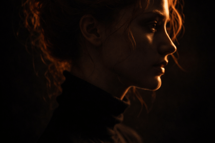 How to create with Google Gemini / AI at Meta Promte Cinematic double-exposure thriller poster, side-profile silhouette of a young woman facing right, hair tied back, her profile filled with a dark futuristic city skyline at night. Inside the silhoue...