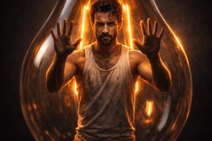 ChatGPT / Google Gemini / AI at Meta Promte . “A hyper-realistic cinematic scene shows a man floating mid-air in slow motion during twilight, surrounded by drifting particles and soft ambient fog. He has black tousled styled...