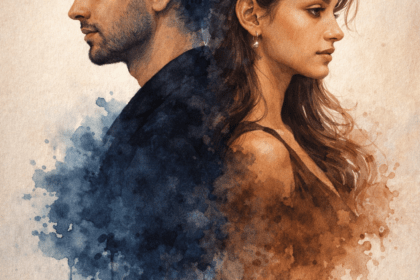 How to create with Google Gemini / AI at Meta Promte Cinematic double-exposure thriller poster, side-profile silhouette of a young woman facing right, hair tied back, her profile filled with a dark futuristic city skyline at night. Inside the silhoue...